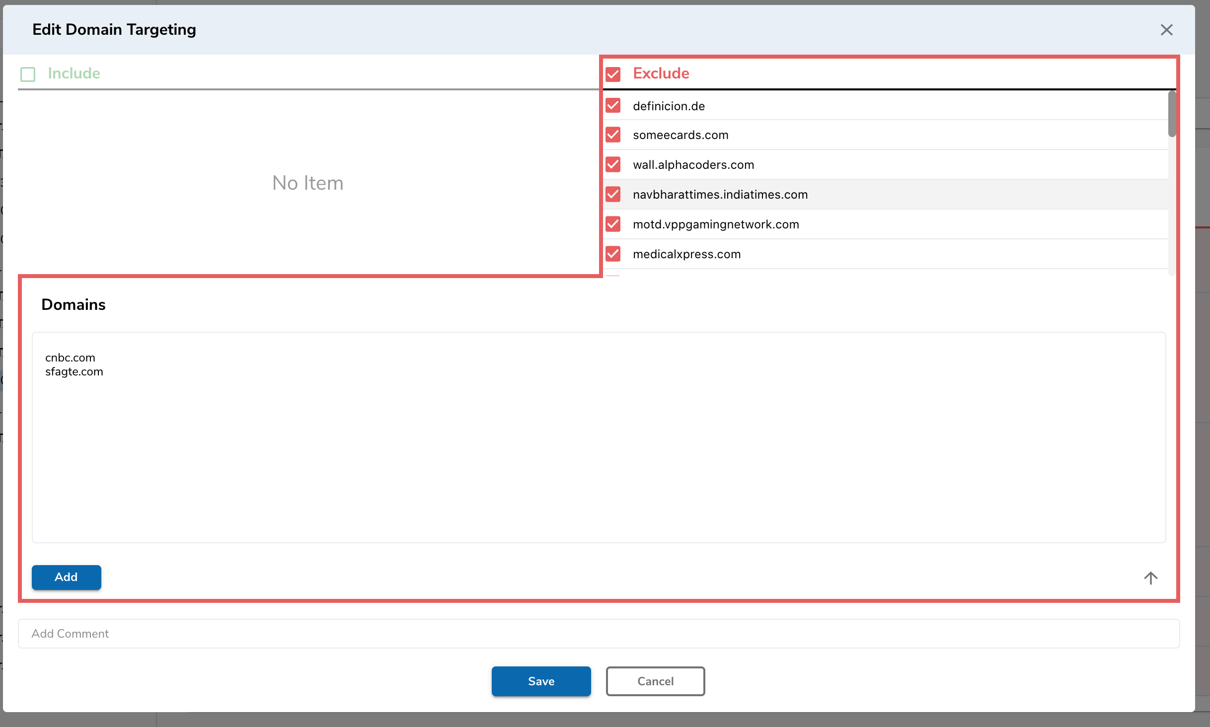 I tried adding two new domains to an existing list, as they were added to the bottom of the list on click os Add, i got no hint if the domains have been updated in the list and i had to scroll down to double check.