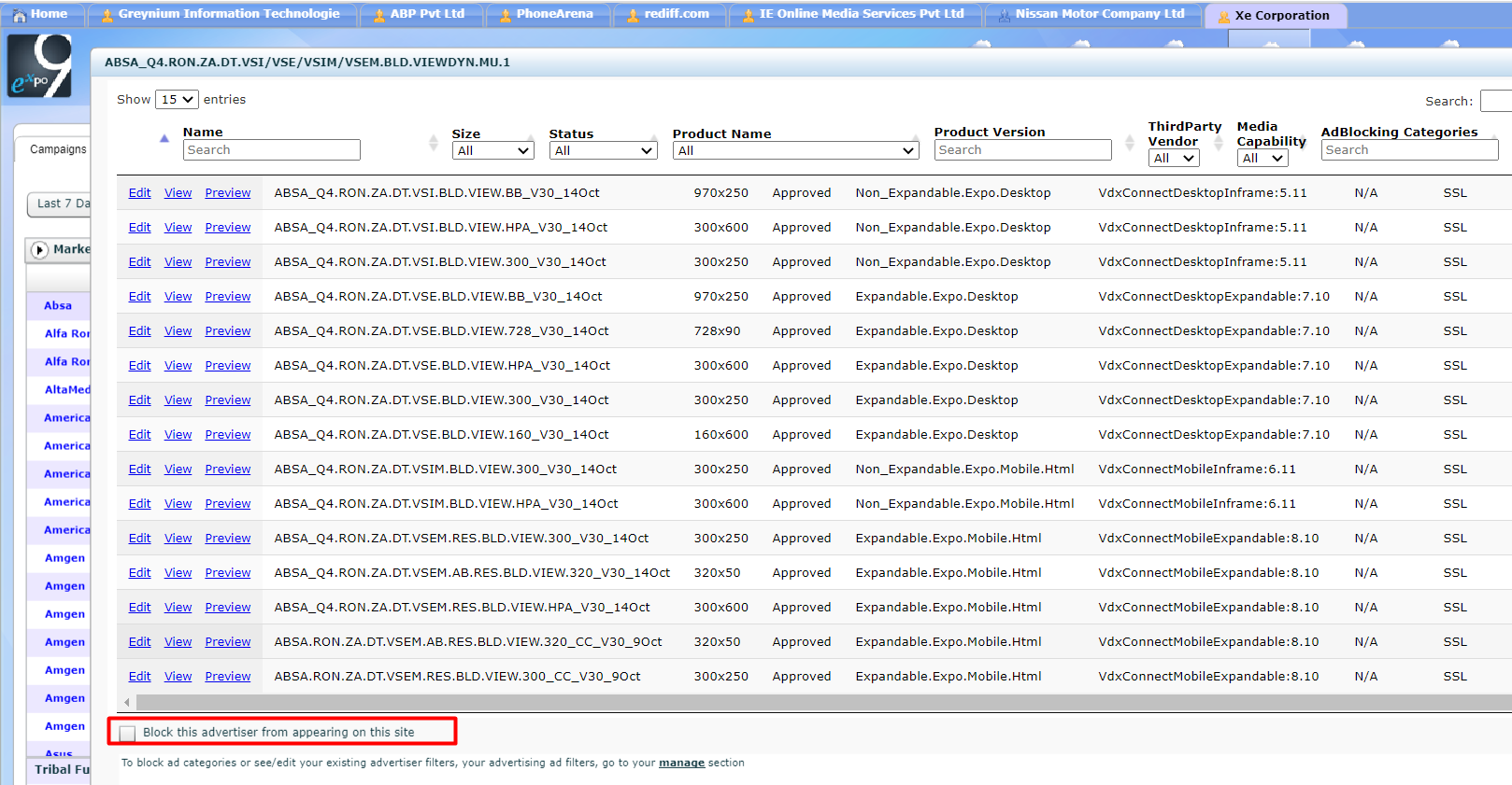 We don't see an option to block an advertiser from the campaigns section itself, as available under Flex UI
